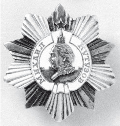 После одобрения варианта И.В. Сталиным художник получил указания по доработке эскиза ордена: поле круглого медальона решили покрыть белой эмалью, а золотой профиль М.И. Кутузова поместить на фоне Кремлевской башни. По бело-эмалевой ленте вокруг портрета полководца шла надпись: «Михаил Кутузов». Медальон окаймлялся венком из листьев: лавровых – слева и дубовых – справа. Из-под медальона расходились пять пучков закругленных серебристых лучей, расположенных между концами звезды.