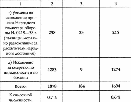 Таким образом, фактическая убыль из армии командно-начальствующего и политического состава составляет: