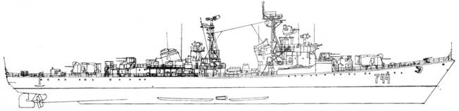 В 1961 облегченная мачта заменена, РЛС заменены, убран кормовой ТА, установлены РБУ и РКУ. В 1972 установлены 4x2 2М-ЗМ, МИ-110К, РЛС «Дон», система приема грузов в море (стойки за носовой башней). Мостик с выступом, козырек дымовой трубы отклонен вперед.