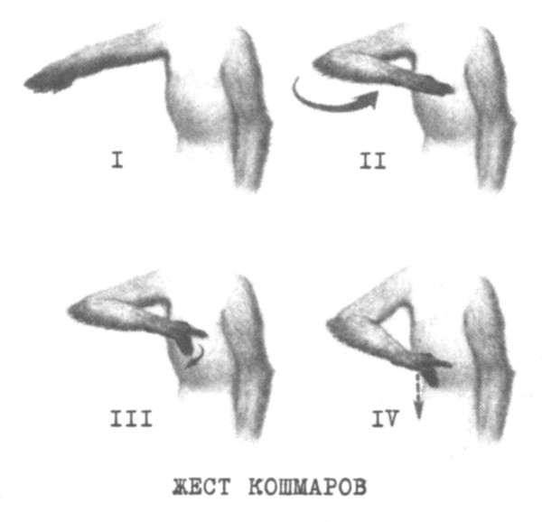 Генри отметил мохнатость рук. Малоприятное перевоплощение в зверей потребует изрядного грима. Согнутая рука подносится к груди, два пальца направлены вниз, затем рука падает. Интересно, почему два пальца?